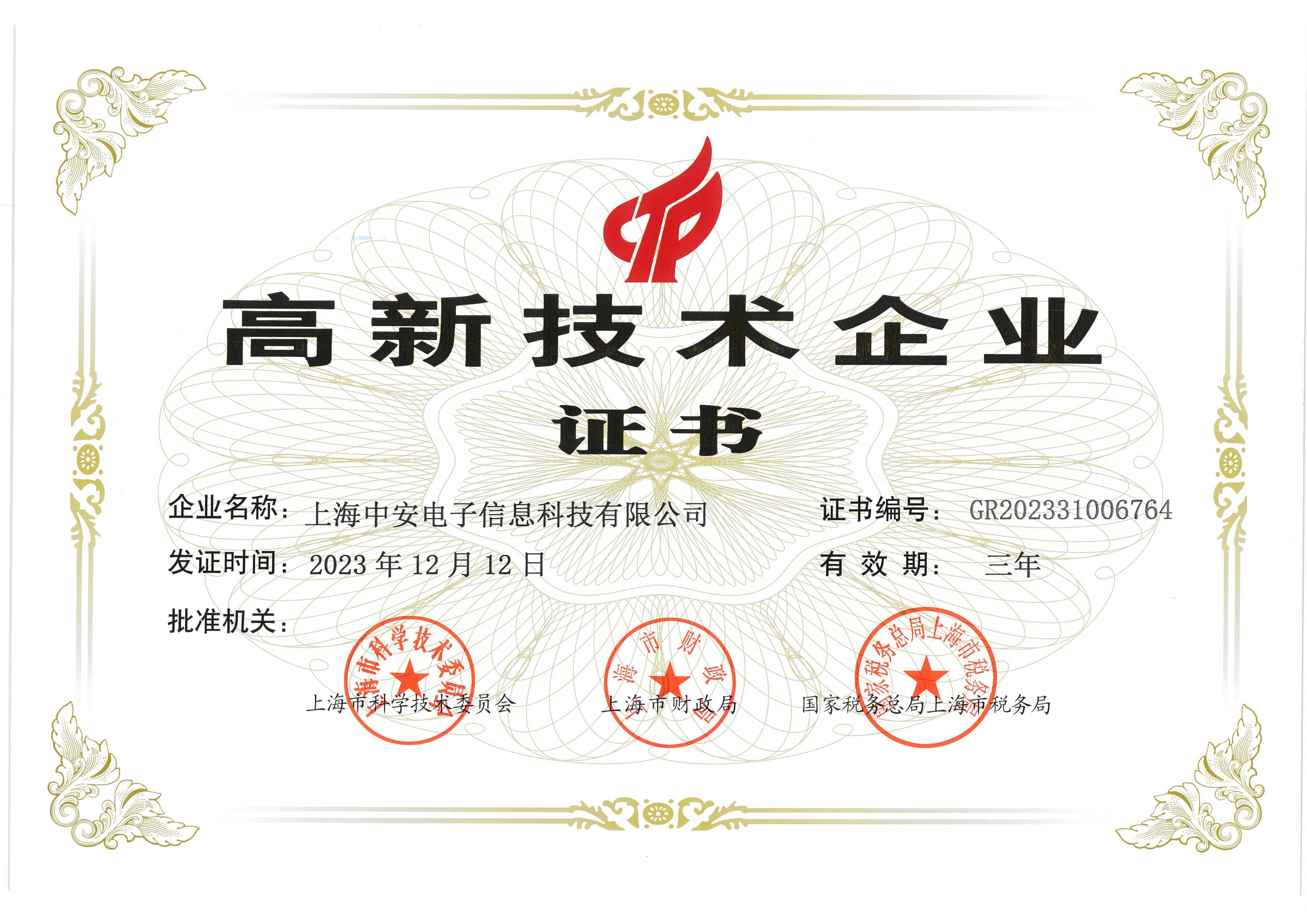 中安科技再獲“高新技術企業”認定?。?024/03/04)